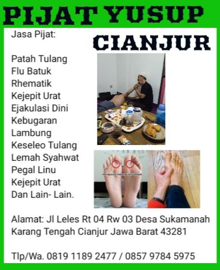 BISA PANGGILAN SAYANGI RAGA ANDA BERSAMA PIJAT YUSUP CIANJUR Bagikan ini: Klik untuk berbagi di X(Membuka di jendela yang baru) X Klik untuk membagikan di Facebook(Membuka di jendela yang baru) Facebook Suka Memuat... Terkait Diterbitkan oleh Media sosial Publikasi umum Lihat semua pos milik Media sosial