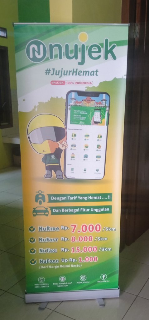 Bandung. Salah satu Aplikasi Jasa Transportasi Online karya Santri Produk Dalam Negeri yaitu Nujek. Perkembangan Apk Nujek sangat Baik di Nusantara Republik Indonesia. Nujek gandeng Pos Indonesia. Fitur Fitur sudah tersedia di aplikasi Nujek. Bisa mengurangi kantong perjalanan Anda kemanapun Anda bepergian. Tarif Lebih Murah terjangkau oleh semua kalangan masyarakat.