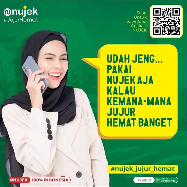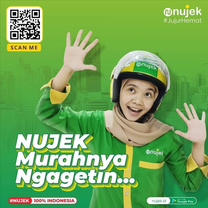 Cianjur. Nujek adalah Jasa Transportasi Online karya Santri Produk Dalam Negeri 100 Indonesia yang Tarifnya lebih murah terjangkau Oleh semua kalangan masyarakat Cianjur khususnya. Nusantara Ojek diciptakan oleh santri Nahdatul Ulama tujuan nya untuk Menghemat dompet Perjalanan Anda kemampuan bepergian. Gunakan aplikasi #Nujek#. Motor 8000/3 km. Mobil 20.000/3km. Antar Paket 9000/ 3 km. Pesan makanan beda 1000 dengan Harga Resto. #Dnc#