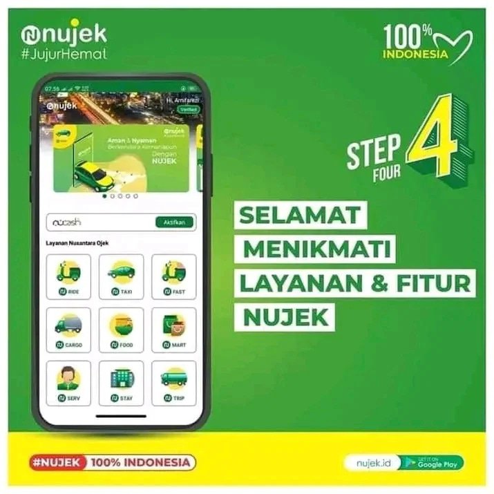 Maka dari itu kami ( masyarakat Cianjur) mengajak kepada semua pengguna Jasa Transportasi Online. Download Aplikasi Nujek karya Santri Produk Dalam Negeri, Ciantai dan gunakan Produk Dalam Negeri. #Tim#