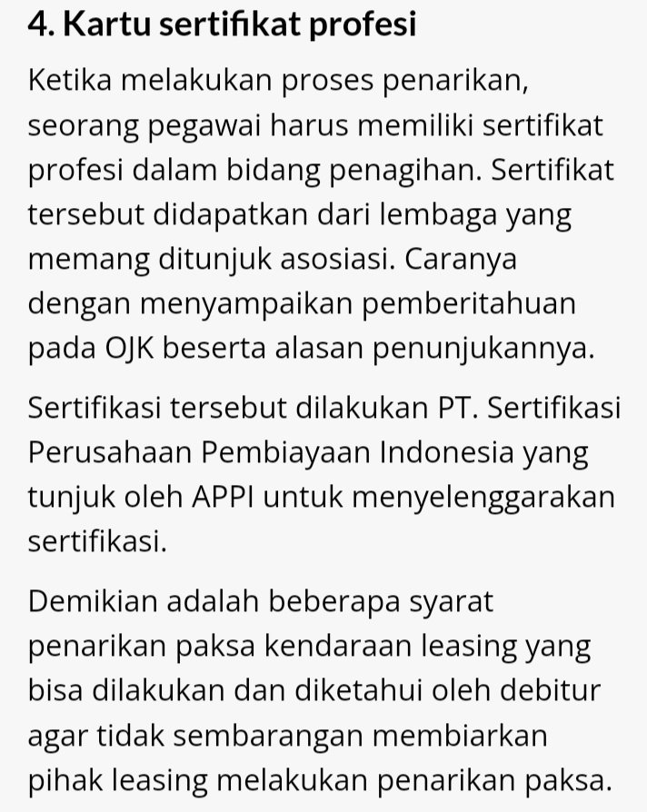 Cianjur. Colector ( DC), banyak oknum debc colector yang tidak memiliki surat tugas dari perusahaan Leasing untuk penarikan kendaraan secara paksa baik di rumah maupun di jalan, ketika media Investigasi ke lapangan bertemu dengan sdr cep dia mengutarakan, saya punya kredit kendaraan roda dua / motor ketika di jalan ada Matel/ DC( colector) yang tugasnya meng eksekusi atau mengambil kendaraan secara paksa tuturnya. Akan tetapi saya tanya surat tugas dan Yang lain nya tidak ada, hanya mempunyai data di HP android colector tersebut, motor saya tidak dikasihkan walaupun dia agak memaksa tutur sdr cep. Maka dari itu kami mohon kepada pihak yang berwajib agar segera menindak tegas oknum Debt Colektor khususnya di kabupaten cianjur Jawa Barat. Juandi