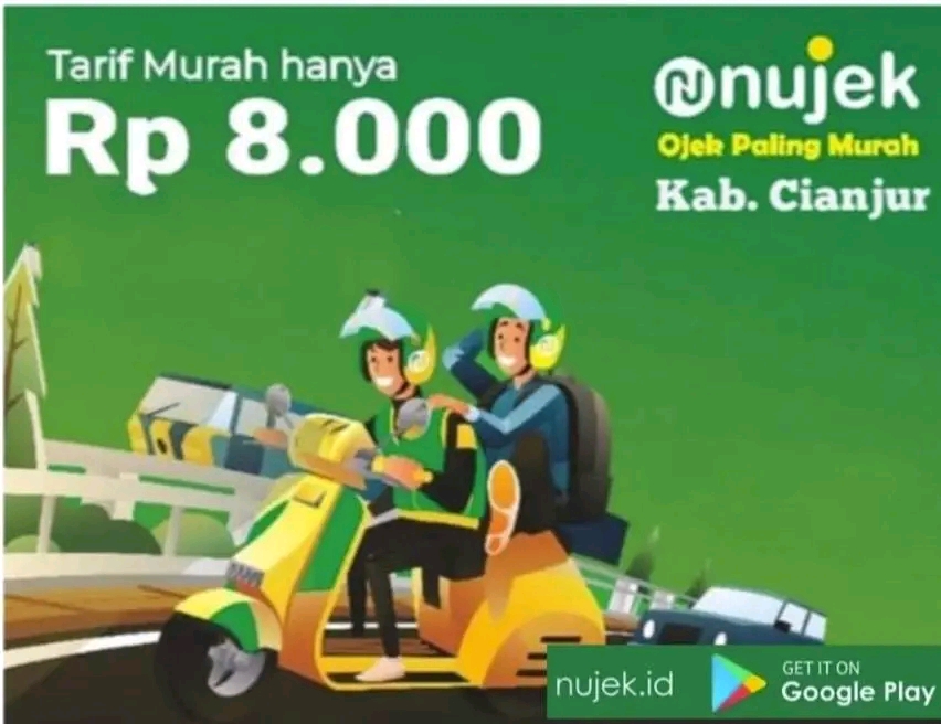 Cianjur Nujek adalah jasa Transportasi online karya Santri Untuk Negeri Produk dalam Negeri 100% Indonesia. Nujwk ( Nusantara Ojek ) diciptakan untuk memberdayakan Ekonomi Umat Indonesia. Dengan berbagai macam Layanan.