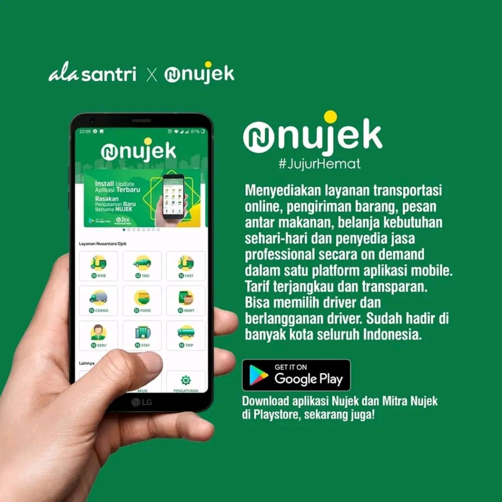 Nujek di ciptakan oleh Santri Nahdatul Ulama Surabaya dengan tujuan untuk memberdayakan ekonomi Umat di Indonesia. Menurut CEO Nusantara Ojek Ketika di temui awak media di lokasi dia mengutarakan keuntungan Dari Aplikasi Nujek 5% kami sumbangkan ke Yatim Piatu. Pondok Pesantren dan Panti Jompo. Maka dari itu ketika masyarakat menggunakan ( order Nujek) secara tidak langsung masyarakat tersebut telah menyumbang Panti Jompo. Yatim Piatu dan Pondok Pesantren. Bersambung……..