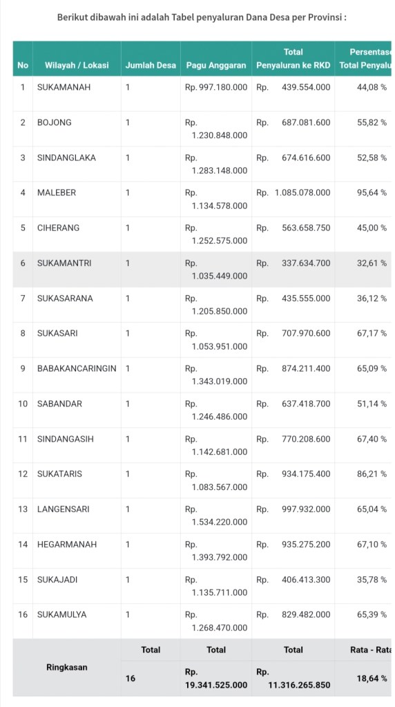 Pagu Anggaran Dana Desa Wil. Karang Tengah Cianjur